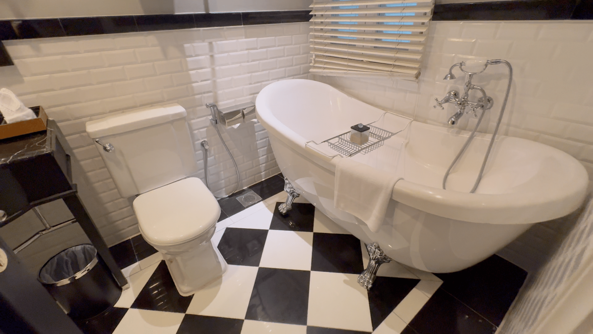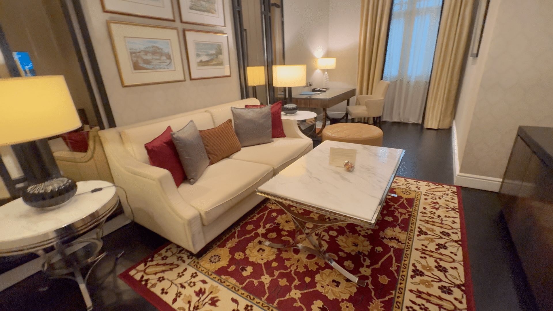 リビングと寝室がある広い部屋。調度品もクラシカルでとっても優雅でロマンチック。オシャレな三面鏡の化粧机、猫足のバスタブとか、英国の貴族気分になれます。