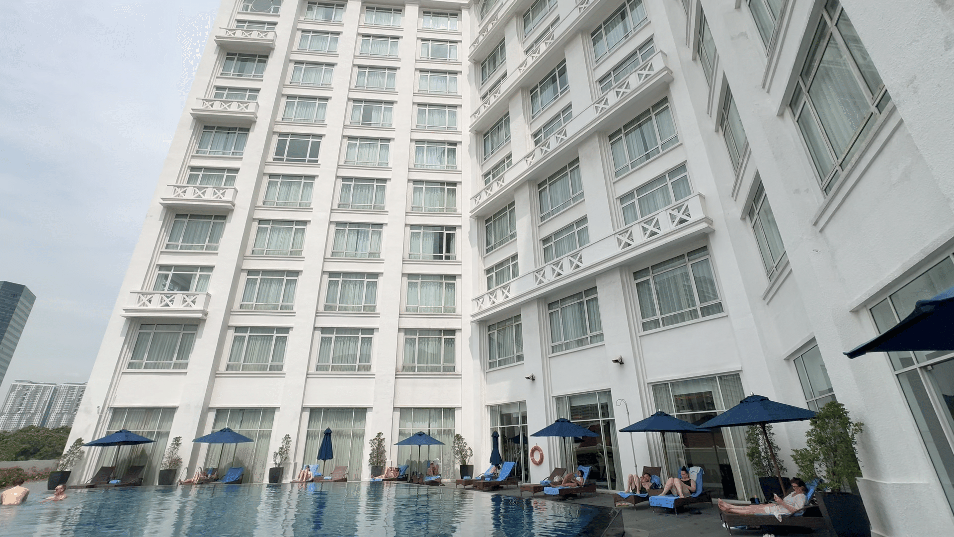 プールは二カ所、マジェスティックタワーと、タワーウィングにそれぞれ一つずつあります。よく写真に使われているのはタワーウィングの方で、こちらのほうが広いです。隣にはフィットネスジがあります。屋上ではないですが、中層階に屋外で開放感があります。