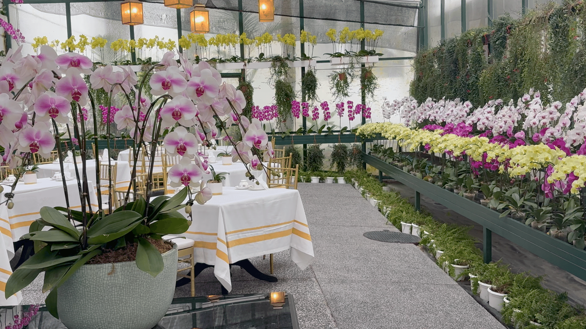 一番高いオーキッド・コンサバトリーは、名の通り胡蝶蘭に囲まれた部屋です。