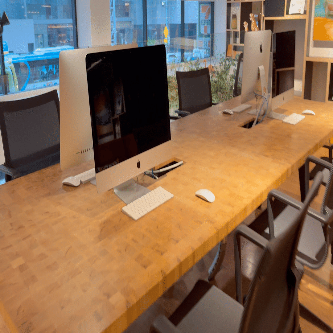 中二階にはワーキングスペース。コンセント付のデスクやチェアがたくさん、しかもオシャレに並んでいます。パソコン作業もしやすいし、読書なんかにも最適です。二人で一部屋だとちょっと手狭感がありますが、ここで寛げるので問題なしです。本当に部屋は寝るだけでOK。